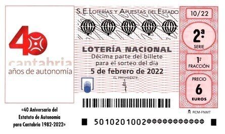 El 40 aniversario del Estatuto de Autonomía de Cantabria, que entró en vigor el 1 de febrero de 1982, será el protagonista del sorteo de la Lotería Nacional de este sábado, día 5.