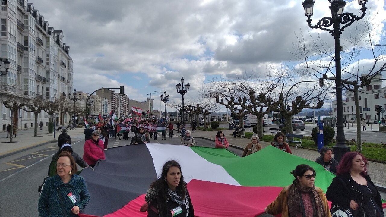 Así, los asistentes, convocados por el Comité de Solidaridad con los Pueblos-Interpueblos y con el respaldo de 43 organizaciones sociales cántabras, han recorrido este mediodía el Paseo Pereda encabezados por una gran pancarta desde la plaza de Puertochico hasta la Delegación del Gobierno, donde se ha hecho lectura de un manifiesto.