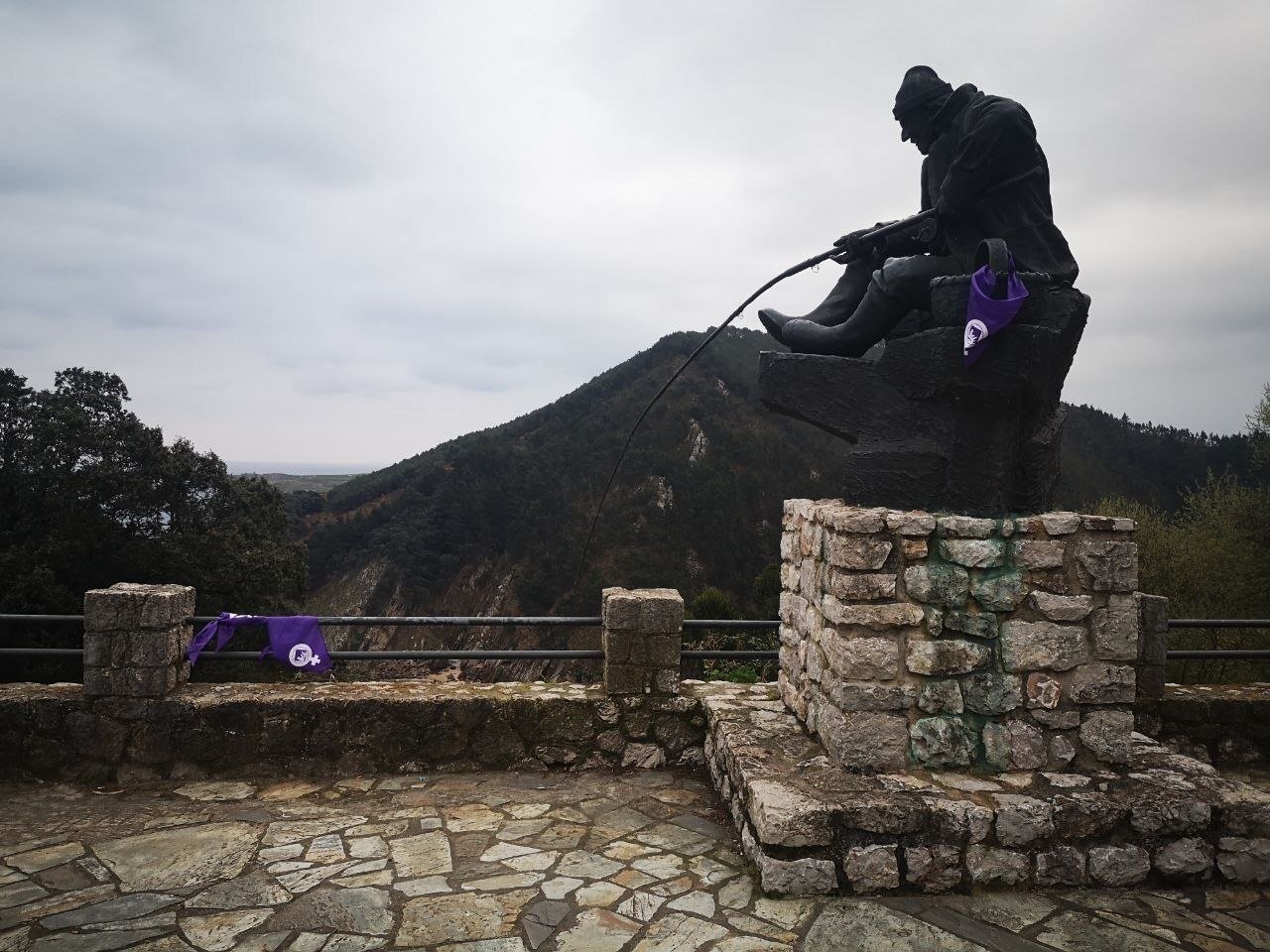 Izquierda Unida (IU) ha colocado este 8 de marzo, Día Internacional de la Mujer, pañuelos morados en las estatuas y monumentos de diferentes pueblos y ciudades de Cantabria para reivindicar mayor visibilidad y espacio público para las mujeres.
