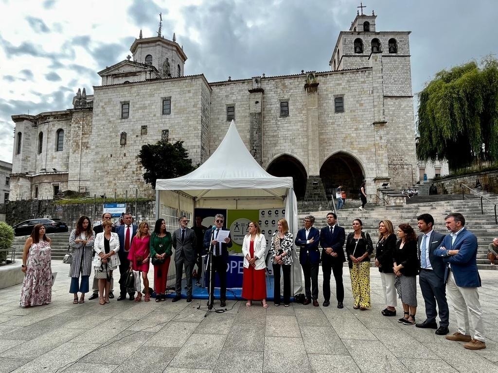Con una carpa instalada en la Plaza de la Catedral de Santander en la que se están repartiendo esta mañana folletos informativos y flores a los ciudadanos, y con la lectura de un manifiesto con el título 'Paremos el acelerado deterioro de un derecho esencial', han dado visibilidad al trabajo que prestan en la región los 533 profesionales del Turno de Oficio en favor de colectivos vulnerables como víctimas de violencia, migrantes o internos en centros penitenciarios.