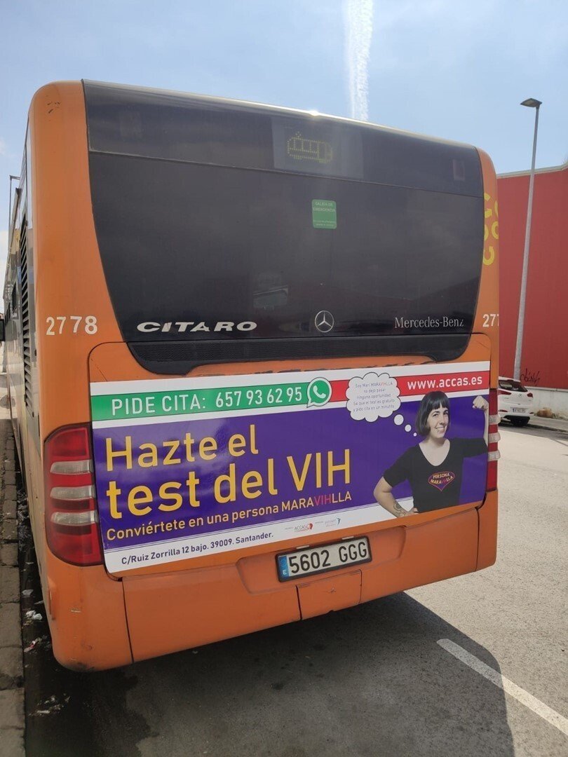 La campaña será visible en la estación de autobuses de Santander y en cuatro rutas interurbanas con destino a Liencres, Astillero, Maliaño y Reinosa. En ella se resalta la necesidad de pedir cita para realizar el test del VIH, que se puede hacer de forma anónima, confidencial y gratuita en la web www.accas.es y en el WhatsApp 657 936 295.