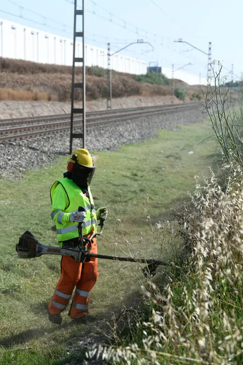 De forma preventiva, Adif refuerza las labores de limpieza química y mecánica de la vegetación y del material de desecho en los márgenes de la infraestructura, al tiempo que realiza una especial vigilancia en los trabajos en vía.