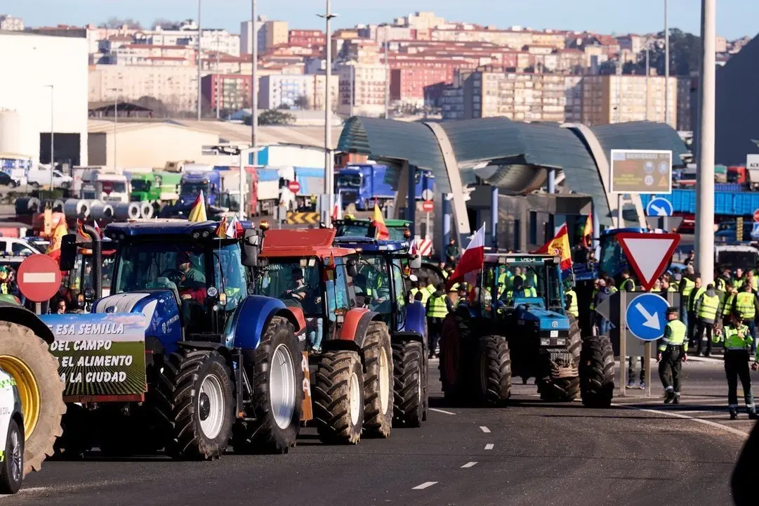 Unos 500 agricultores y ganaderos con una treintena de tractores se han concentrado este martes, de 9.30 a 11.00 horas, frente al Puerto de Santander, a la entrada de la Ciudad del Transporte desde la autovía A-67, donde han cortado el acceso de camiones, para pedir que se revise la normativa europea, que les "asfixia", y "reciprocidad" en las exigencias respecto a las de terceros países que importan productos.