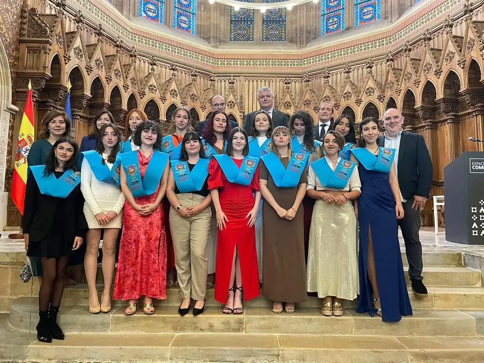 Por parte de los estudiantes de grado, la doctora Nuria González Alonso, madrina de esta promoción, ha entregado las respectivas becas a Azucena Ariño Bolado, Anna Báscones Martínez, Margarita Cabeza Barreda, Martina Cannizzaro, Rosa Gómez Pinacho, Sofía Massimino, Carla Pérez Gómez, Paola Rodríguez Rosino y Lucía Sánchez Arroyo.