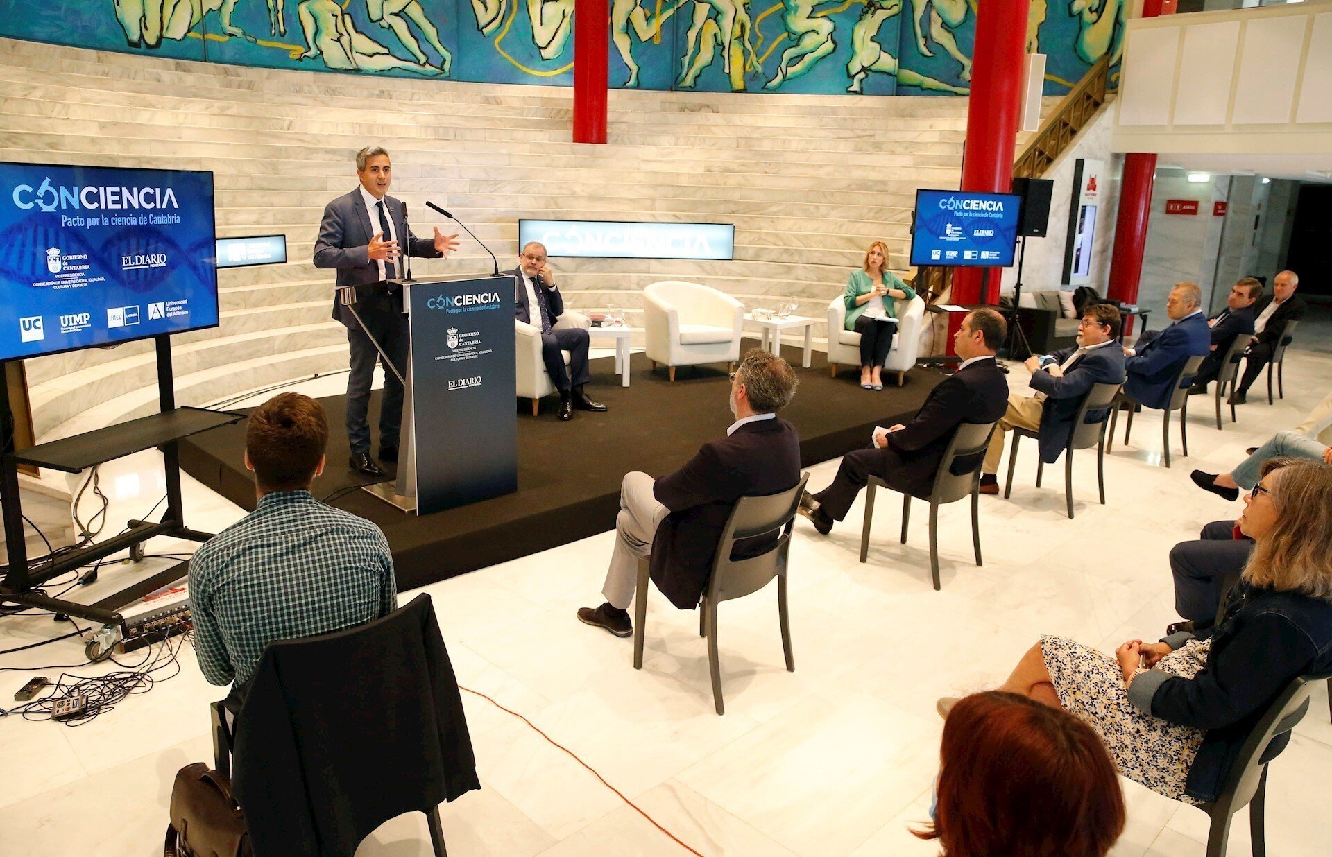 En el acto también han estado presentes el rector de la Universidad Europea del Atlántico (UNEATLANTICO), Rubén Calderón; representantes de la Universidad Menéndez Pelayo; el presidente del Parlamento, Joaquín Gómez, y varios miembros de la Consejería de Universidades, Igualdad, Cultura y Deporte del Gobierno regional.