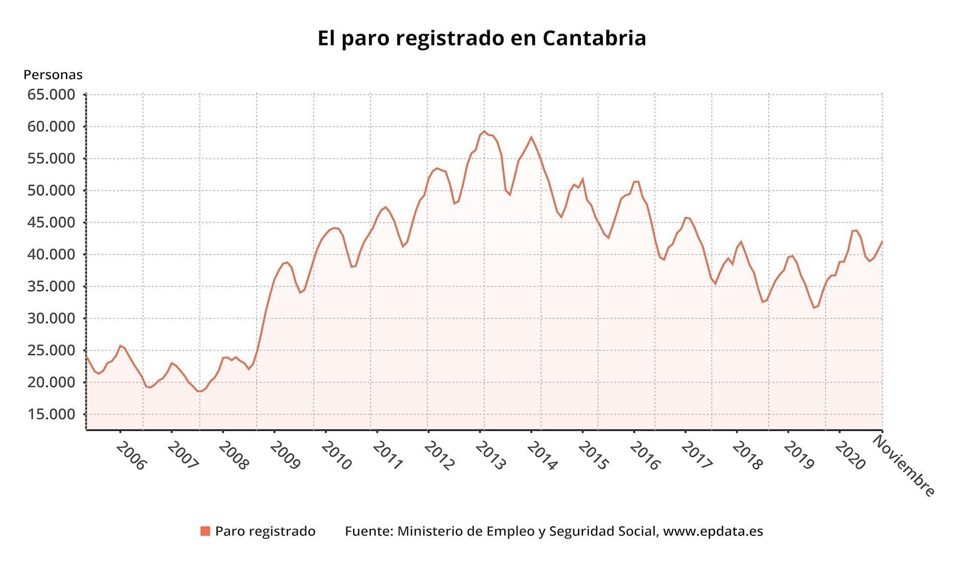 De este modo, Cantabria cuenta con 42.053 personas sin empleo en el undécimo mes del año.