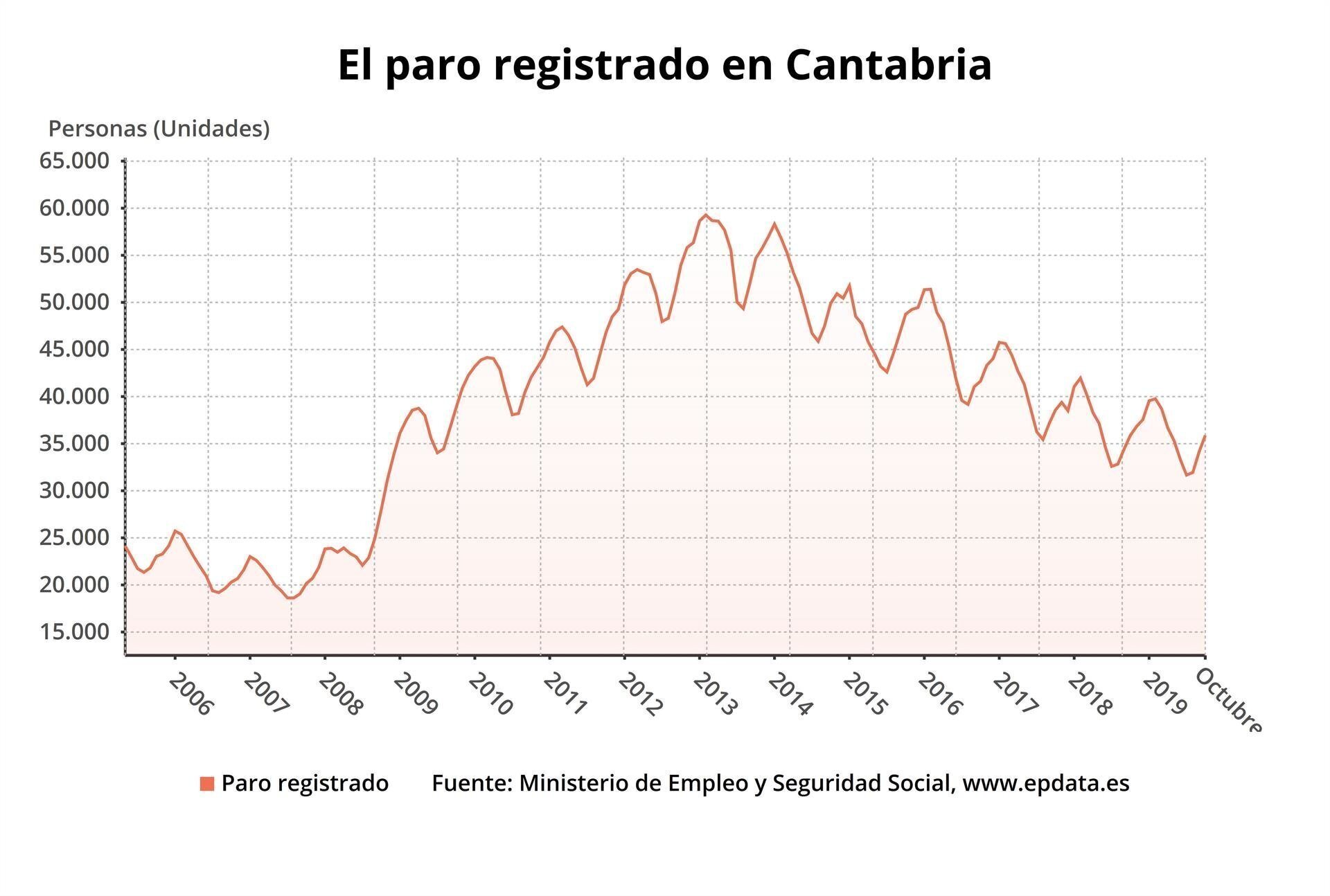 Además, hubo cinco parados menos en Cantabria, un -0,01%, en relación con octubre de 2018, cuando el descenso medio nacional alcanzó el -2,37%.