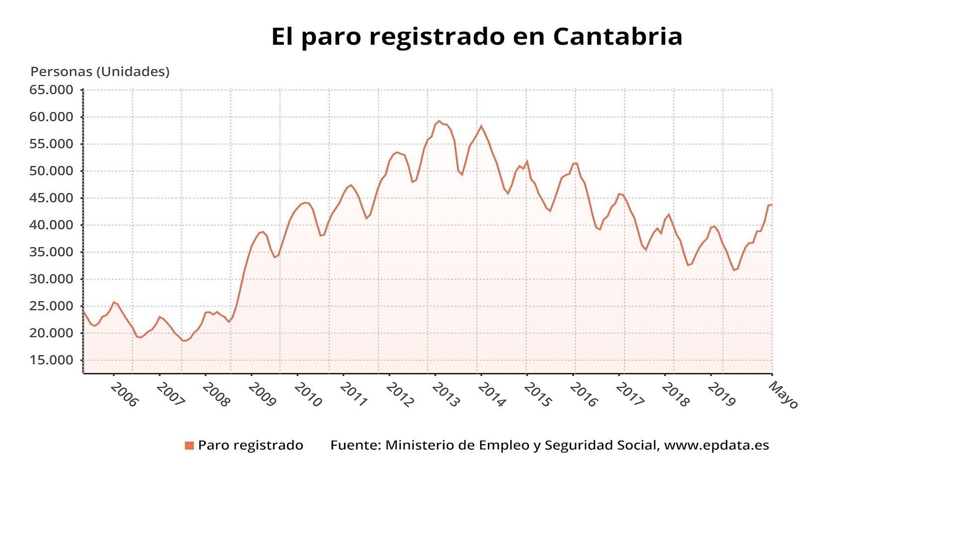 De este modo, Cantabria cuenta con 43.756 personas sin empleo en el quinto mes del año.
