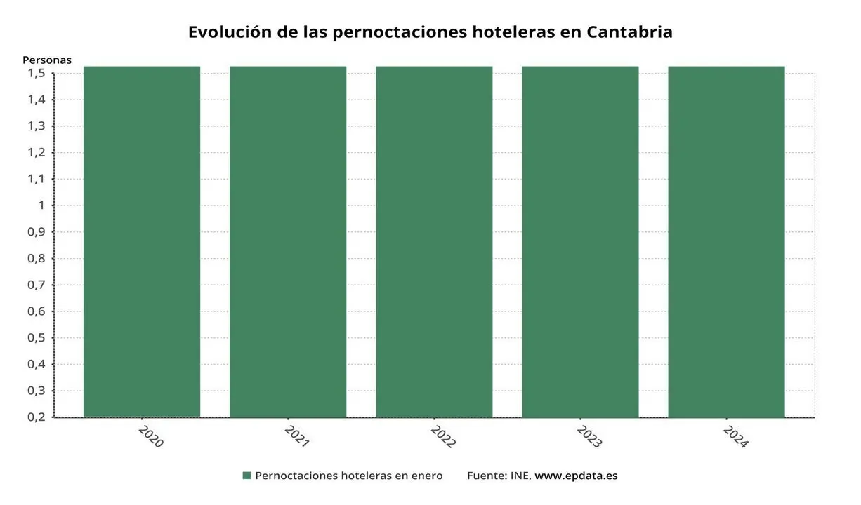 Las pernoctaciones en establecimientos hoteleros en Cantabria aumentaron un 12,94% en enero en comparación con el mismo mes del año anterior hasta sumar un total de 76.919 y encadenan tres meses de crecimiento, según los datos publicados por el Instituto Nacional de Estadística (INE).