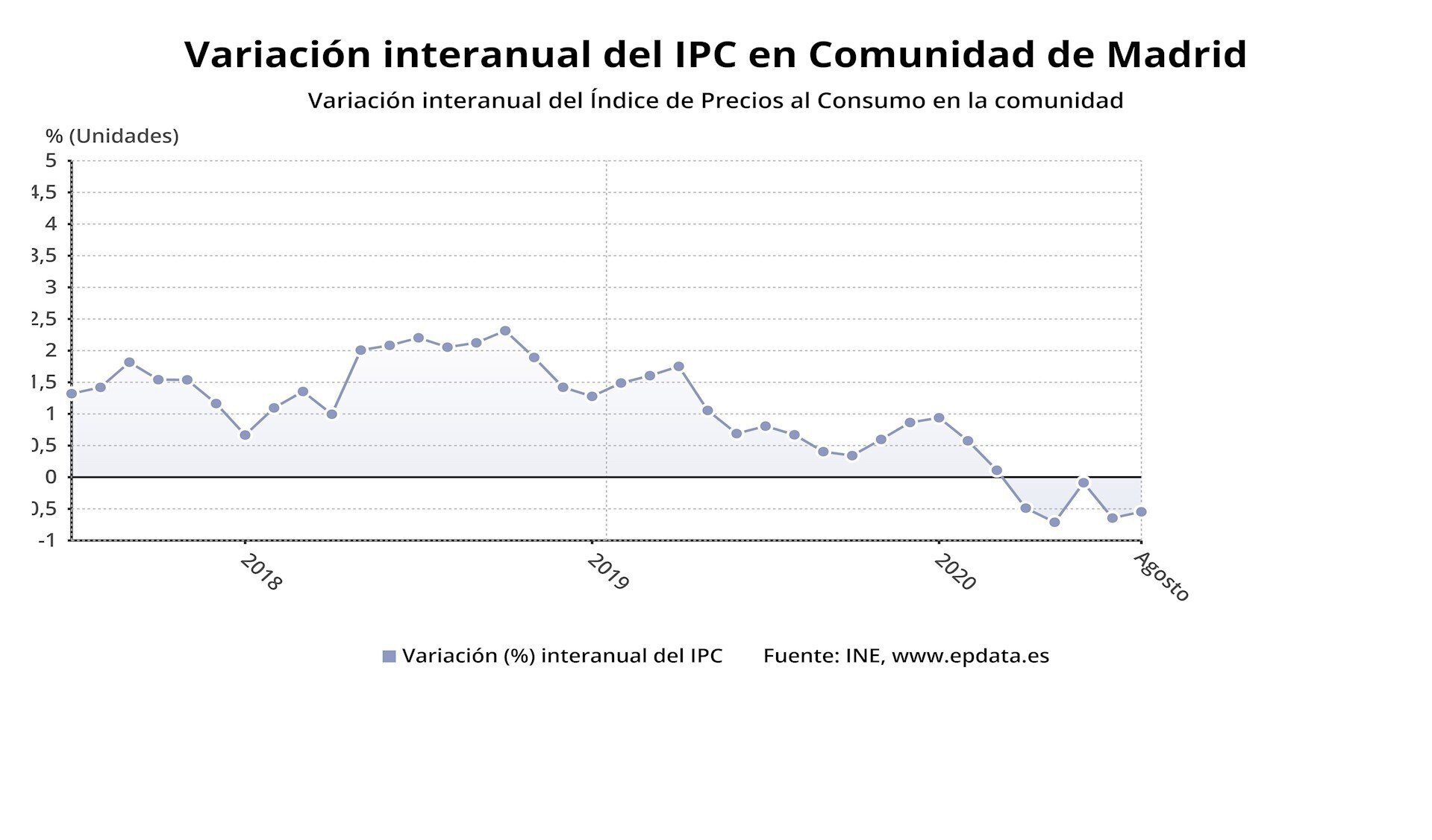 En España, con el avance de una décima, el IPC interanual regresa a los ascensos después de haber retrocedido en julio tres décimas. Con el dato de agosto, la inflación encadena cinco meses en tasas negativas.