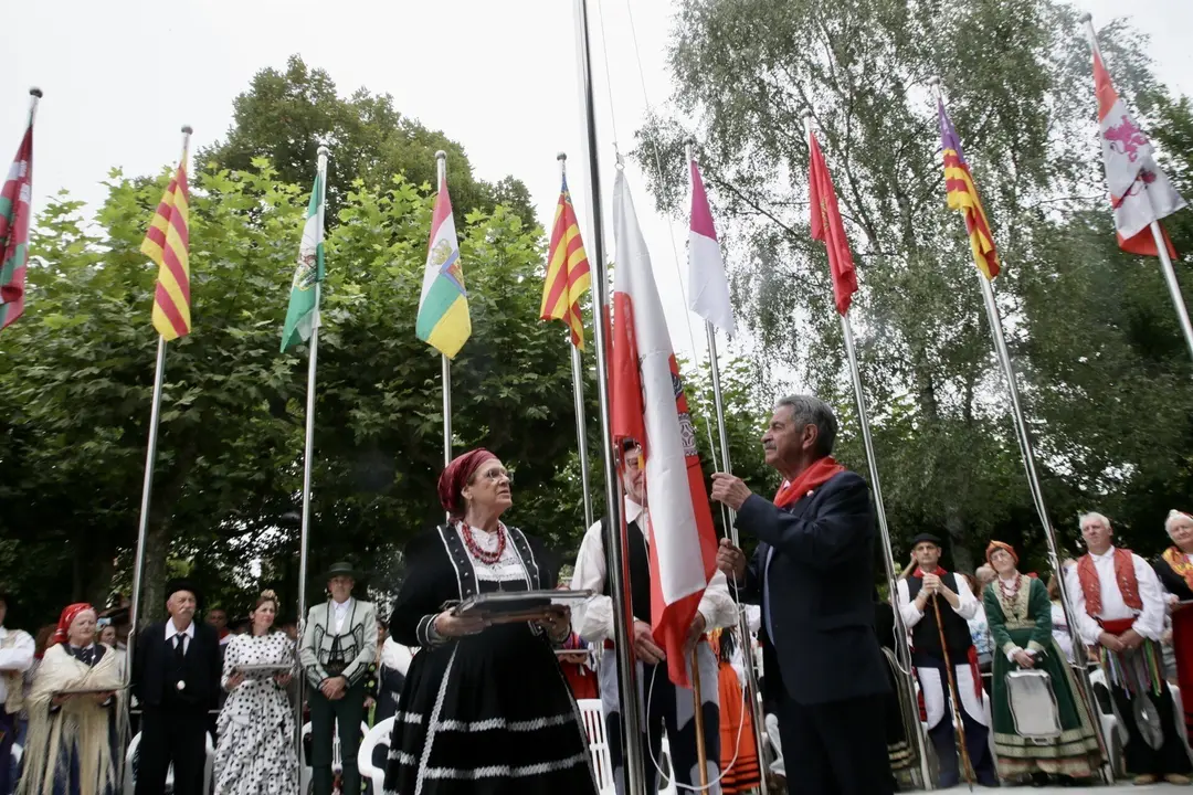 Para escenificar esa acogida y unión con el resto del país, en el acto, junto a la bandera de Cantabria que ha izado el presidente y a la de España, de la que se ha encargado la delegada del Gobierno, Ainoa Quiñones, han estado las de las otras 16 comunidades autónomas, junto a las que se encontraban parejas vestidas con trajes regionales de cada una de ellas.