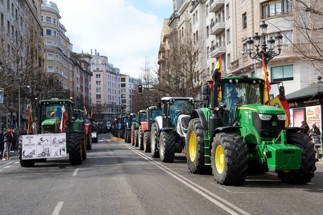 Unos 250 tractores junto a otros vehículos, como camiones, furgonetas y coches procedentes de todos los puntos de la comunidad autónoma han ocupado por la mañana las calles más céntricas de Santander, de la que han empezado a salir por la S-10 a partir de las cinco de la tarde, dos horas después de lo previsto.