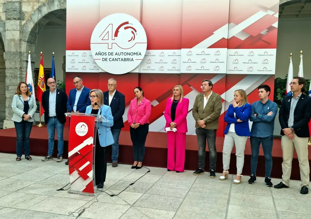 Al acto, celebrado en el patio del Parlamento han asistido además el consejero de Sanidad, el socialista Raúl Pesquera; la vicepresidenta primera del Parlamento, Emi Aguirre (PRC); las diputadas Isabel Urrutia (PP) y Yolanda Algorri (PSOE), y los diputados Diego Marañón (Cs) y Armando Blanco (Vox).