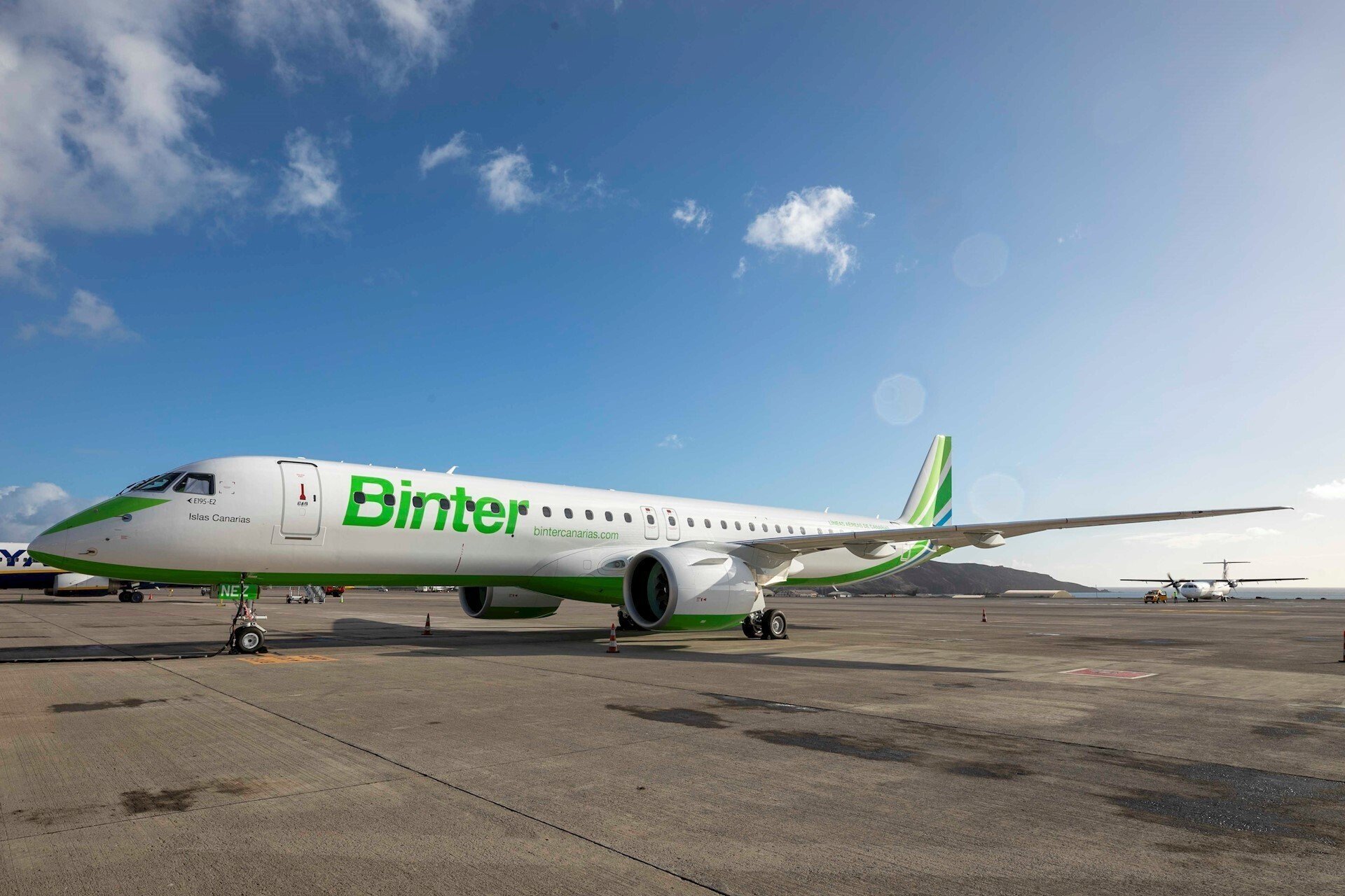 Los vuelos nacionales de Binter se realizan a bordo de los nuevos aviones Embraer E195-E2, el reactor de pasillo único "más silencioso, limpio y eficiente", con una configuración de dos asientos por cada lado y con más espacio entre filas.