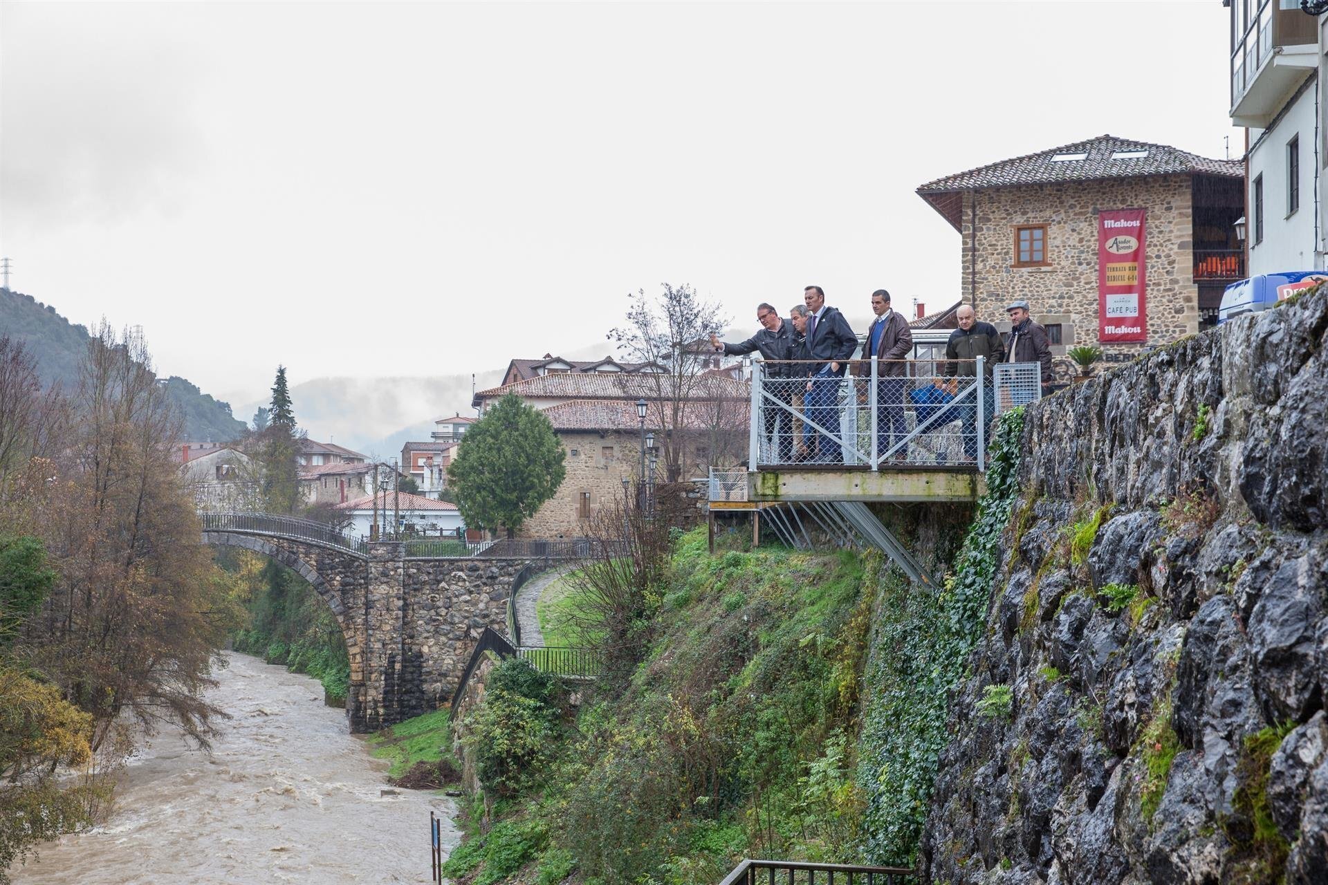El primero de los proyectos LEADER que ha visitado el consejero ha sido el mirador y la pasarela que se ha construido sobre el río Deva en la senda fluvial Deva-Quiviesa, en pleno casco histórico de Potes para conectar la calle San Roque y la terraza de la plaza Raimundo.