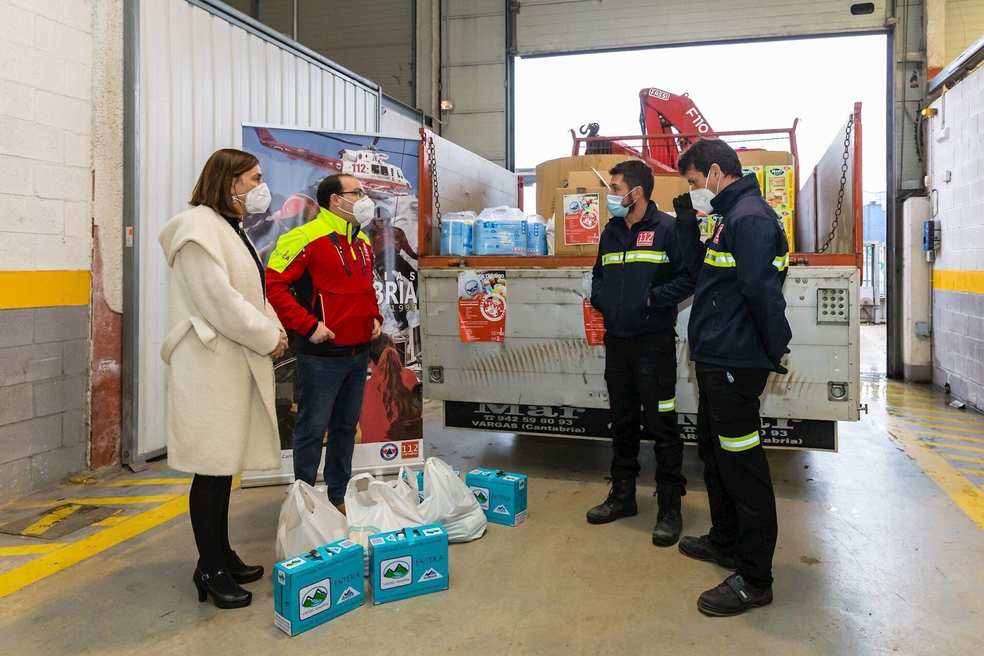 La consejera de Presidencia, Interior, Justicia y Acción Exterior de Cantabria, Paula Fernández, ha acudido a la recogida del último contenedor con alimentos, situado en la sede del 112, para agradecer su solidaridad tanto a los bomberos como a los ciudadanos y para realizar una aportación a la campaña.