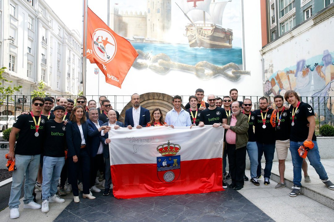 Por su parte, la delegación del Bathco Balonmano Torrelavega ha estado encabezada por su presidente, Antonio Gómez, acompañado por el cuerpo técnico y la plantilla de jugadores.