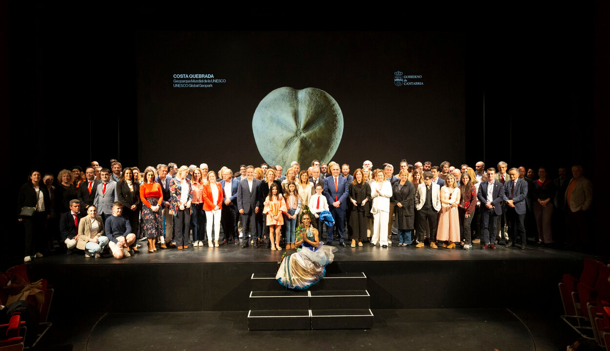 El acto ha tenido lugar en la Sala Pereda, donde Buruaga ha estado acompañada por el consejero de Medio Ambiente, Roberto Media; el presidente de la Asociación Costa Quebrada, Ángel Trujillano; la secretaria de la organización y coordinadora del Geoparque, Lucía Dirube; representantes de los ocho municipios que integran este espacio y alrededor de 250 personas que han querido sumarse a la celebración.