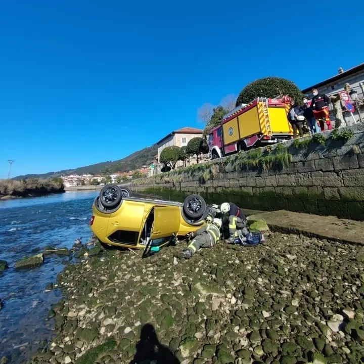 Un vehículo ha caído este sábado al río en el entorno de la plaza de La Venera de Limpias con dos ocupantes, un hombre y una mujer, que no han requerido excarcelación pero que han sido trasladados al hospital de Laredo.