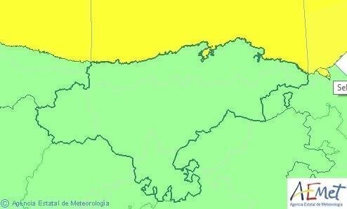 En concreto, el litoral cántabro estará en aviso desde las 00.00 hasta las 20.00 horas.