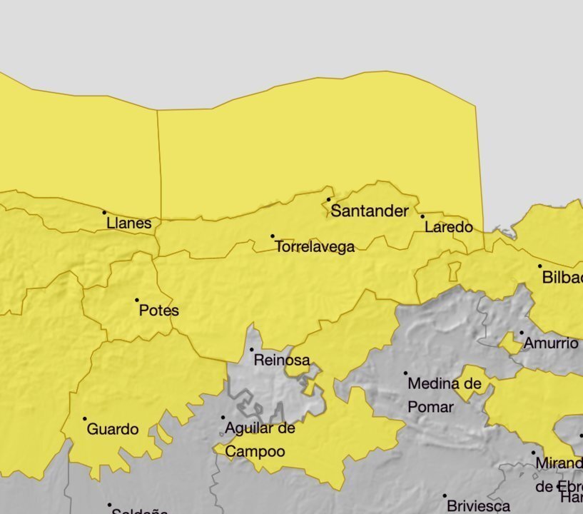 En concreto, Liébana y el Valle de Villaverde están en aviso amarillo (riesgo) por nieve, desde las 12.00 horas y a lo largo de toda la jornada, con una acumulación en 24 horas de hasta 5 centímetros y una cota por encima de los 800 metros.