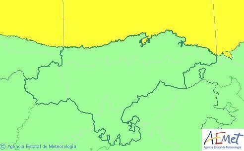 Además, a las 14.00 horas se activará el aviso naranja por fenómenos costeros en el litoral cántabro, al que afectará hasta las 18.00 horas, según la Agencia Estatal de Meteorología