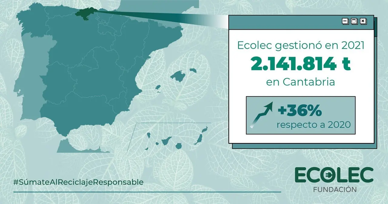 Fundación Ecolec, organización sin ánimo de lucro que centra su actividad en el reciclaje de aparatos eléctricos y electrónicos (RAEE), ha gestionado en Cantabria 2.141 toneladas de dichos residuos durante 2021, lo que supone un incremento del 36% con respecto al año anterior, similar al de Navarra y el mayor de todas las comunidades.