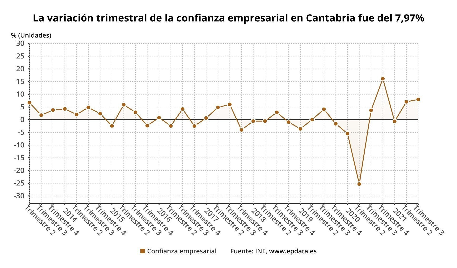 El Índice de Confianza Empresarial Armonizado (ICEA), cuya publicación corresponde al Instituto Nacional de Estadística (INE), ha subido un 8% en Cantabria en el tercer trimestre de este año respecto al segundo, el menor incremento de las comunidades.