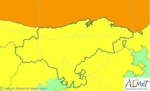 Todos los avisos activos en Cantabria este jueves incrementarán su nivel de cara al viernes, cuando se prevé que la borrasca atlántica que se aproxima a la Península atraviese la comunidad autónoma.