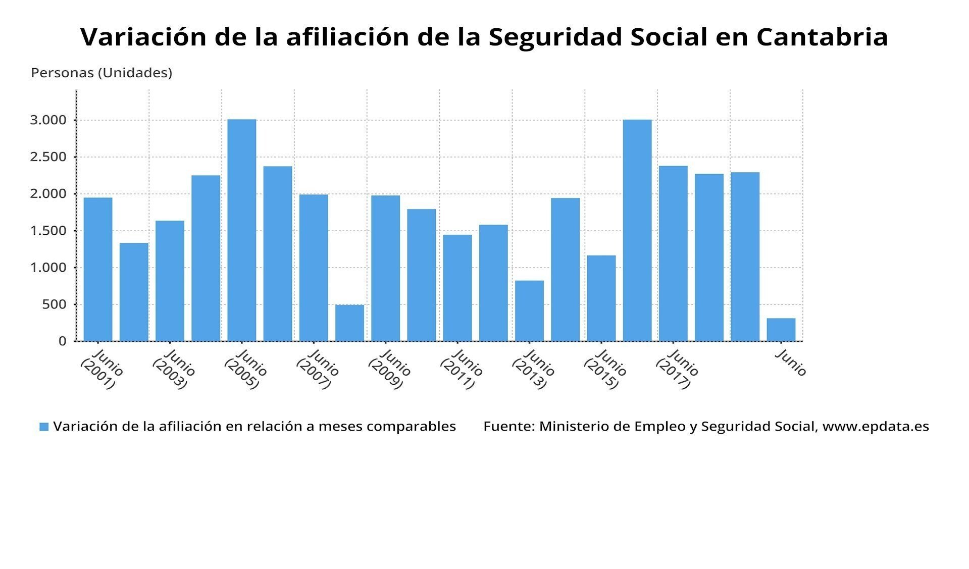 La Seguridad Social ganó 313 afiliados en Cantabria en junio respecto al mes anterior, un 0,15%, menos que la media nacional (0,37%), según ha informado este jueves el Ministerio de Inclusión, Seguridad Social y Migraciones.
