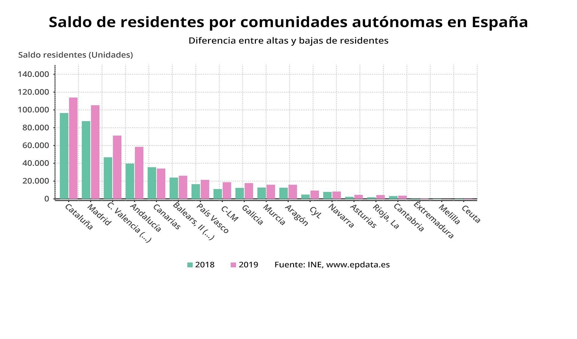 De este modo, en 2019 fueron positivos en Cantabria tanto el saldo interior, con 408 habitantes más, como el exterior, con 3.216.