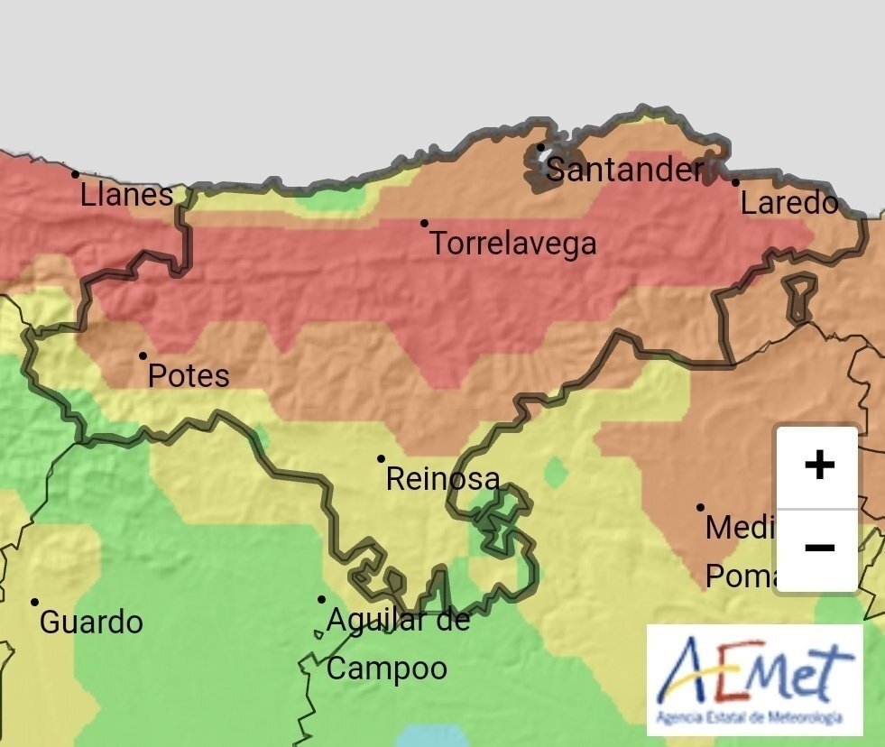 Cantabria ha incrementado las zonas en riesgo alto, muy alto y extremo de incendios forestales, ha informado el Centro de Atención a Emergencias 112 en su cuenta de Twitter.