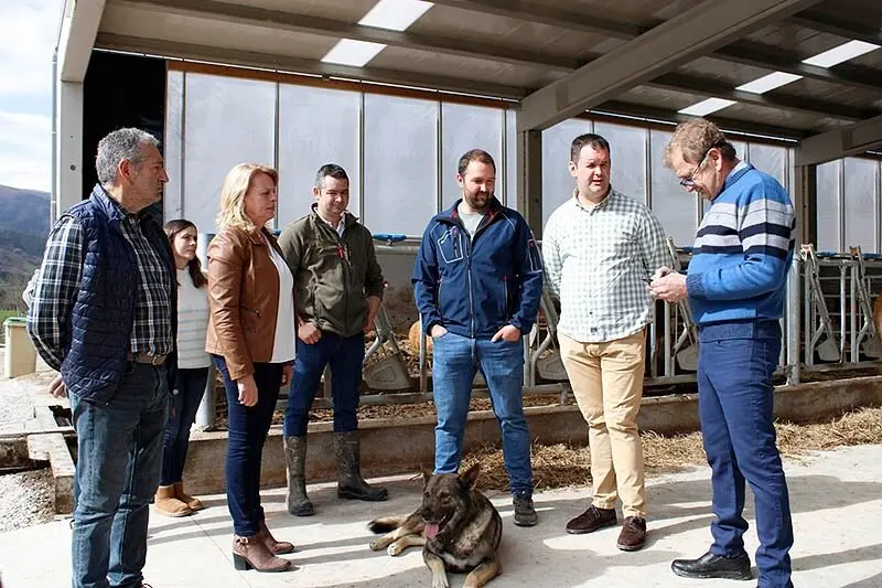 En su visita a la ganadería de Valdáliga, la consejera ha estado acompañada por el alcalde, Lorenzo González.