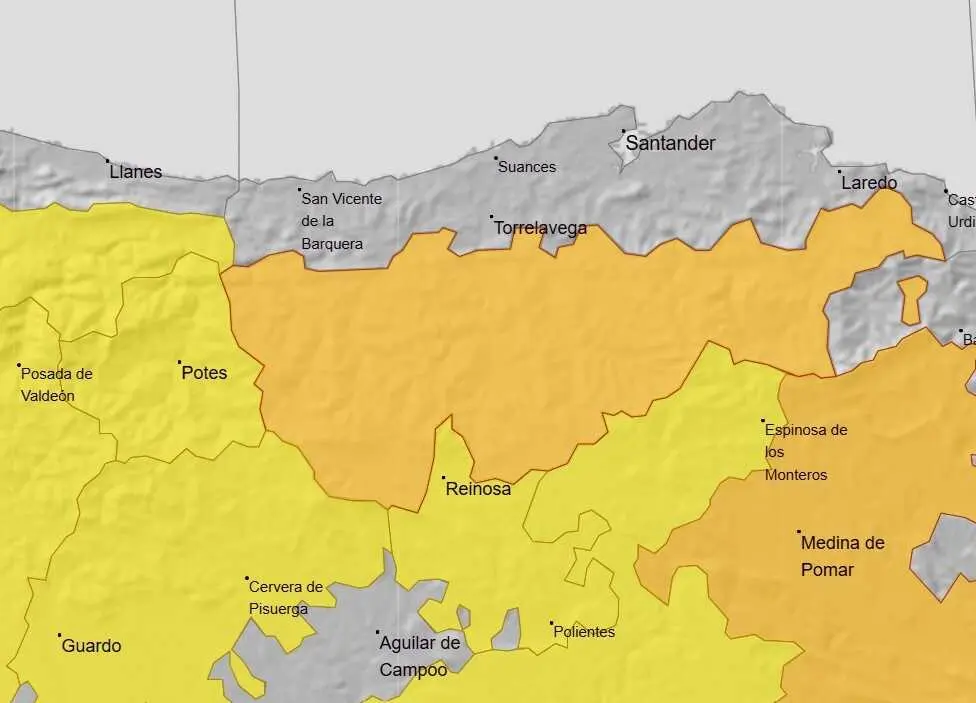 Por su parte, Liébana y la Cantabria del Ebro estarán en aviso amarillo por nevadas también entre las 21.00 horas del lunes y las 15.00 horas del martes.