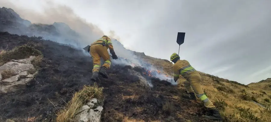 El fuerte viento previsto para toda la jornada de este jueves favorece la propagación del fuego y dificulta las labores de exinción, además de que impide la intervención en el aérea de los helicópteros del Gobierno.