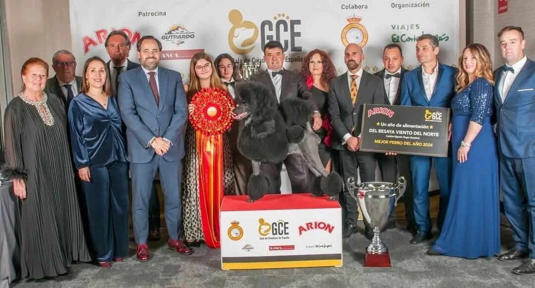 El cántabro Rubén Sánchez Abad y su caniche negro gigante llamada 'Del Besaya Viento del Norte' se han llevado dos de los premios de la primera Gala de Criadores de España, donde han sido reconocidos como Mejor Criador y 1º del Ranking 2024, respectivamente.