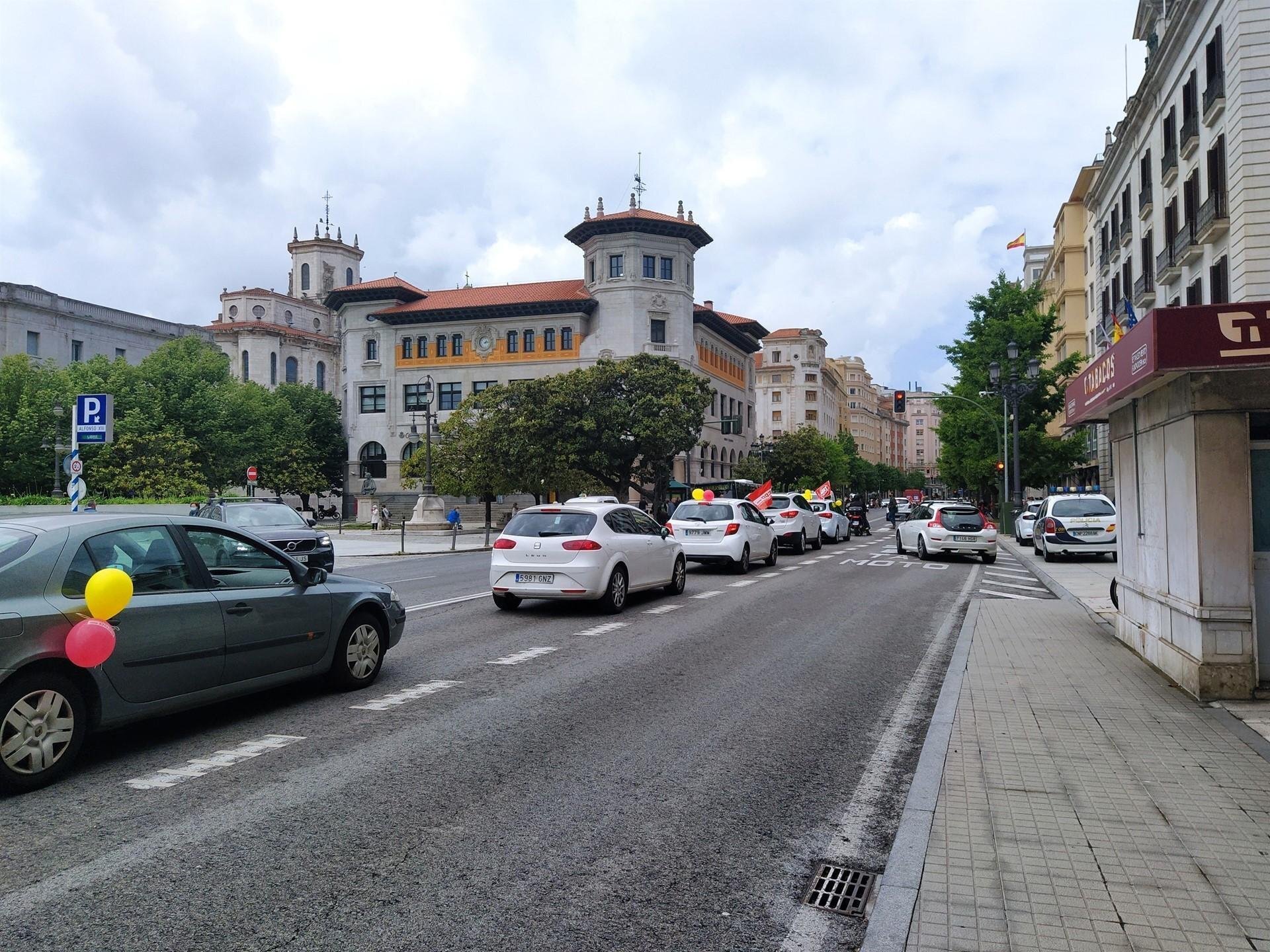 UGT y CCOO en Cantabria han llevado a cabo esta mañana una caravana de protesta en coches contra el "desguace" de Correos, que ha recorrido las principales calles de Santander, desde el parking del campo de fútbol de El Sardinero.