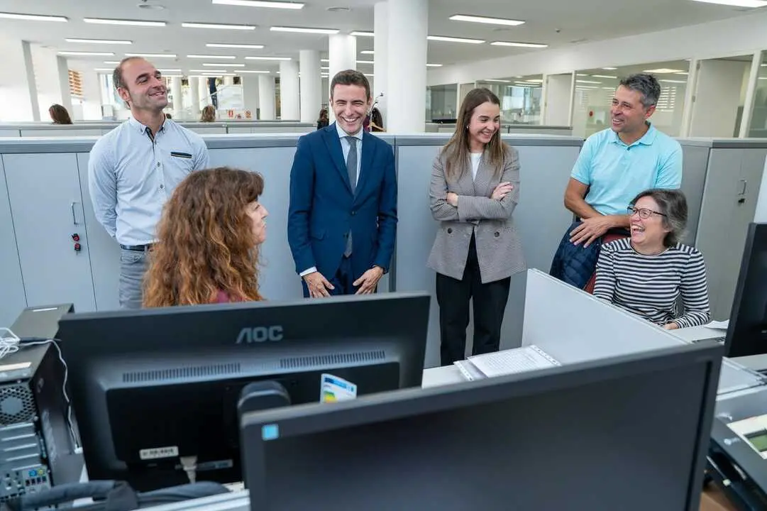 Ha recorrido las oficinas del INE en Cantabria, ubicadas en la calle Concepción Arenal de Santander, junto a su directora provincial, Sofía Muriedas.