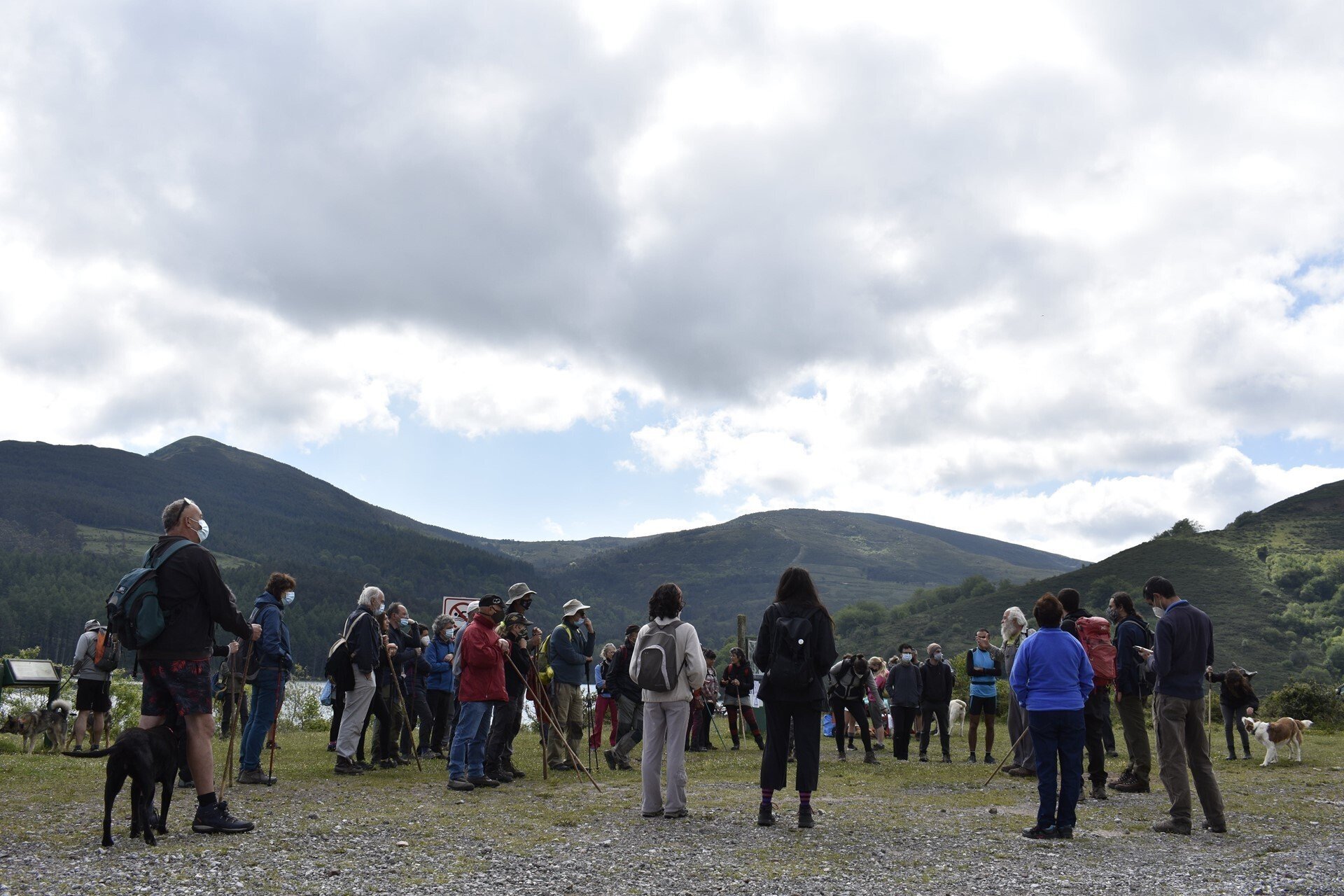 Casi un centenar de personas, según la organización, asistieron este domingo a una marcha desde el embalse de Alsa hasta el Pico Jano, organizada por la Asamblea Contra Viento y Marea para informar sobre los proyectos eólicos en Cantabria.