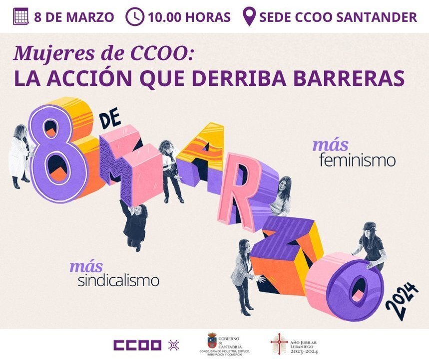 Comisiones Obreras de Cantabria (CCOO) ha organizado, coincidiendo con el Día Internacional de la Mujer, la cuarta edición del acto sindical 'Mujeres de CCOO. La acción que derriba barreras', que se celebrará el próximo viernes, 8 de marzo, a partir de las 10.00 horas, en el salón de actos del sindicato en Santander.