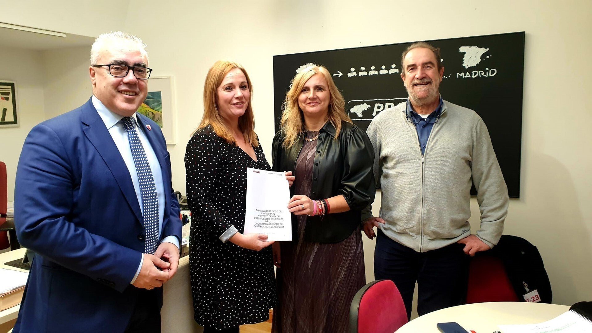 CCOO presenta a los grupos PSOE y PRC sus enmiendas a los presupuestos del SCS que inciden en el exceso de jornada