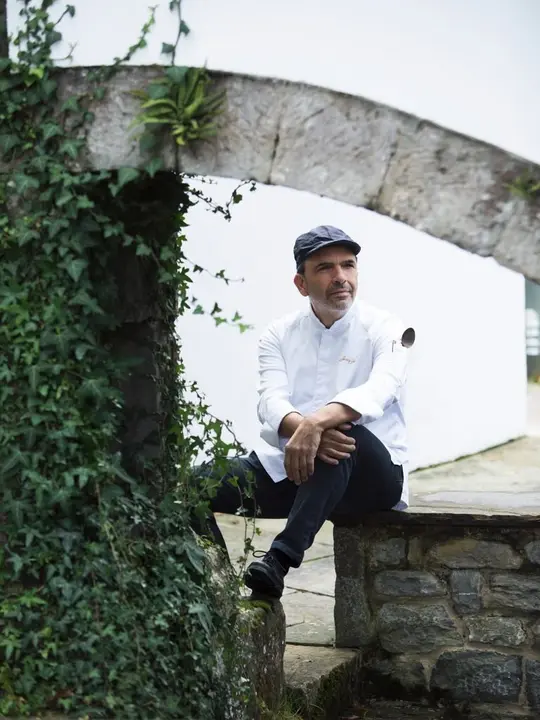 Jesús Sánchez es propietario y cocinero del Cenador de Amós, en Villaverde de Pontones, desde 1993. Cuenta con tres estrellas Michelín y tres soles Repsol.