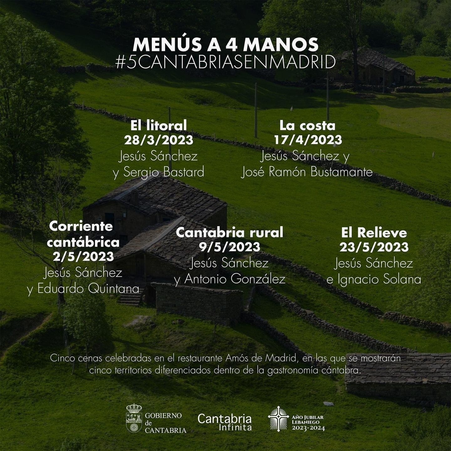 Jesús Sánchez e Ignacio Solana harán un recorrido por la parte montañosa de Cantabria y los productos próximos al río Asón, cercano al restaurante de este último; la corriente del mar empuja a Eduardo Quintana, apasionado del surf, pero con la llegada de la primavera su menú traerá no solo productos del mar sino también flores, guisantes, habas o espárragos; mientras que Antonio González trasladará a los comensales a la Cantabria más rural, de la que recoge para su menú ingredientes de mar y montaña, océano y piedra, o huerta y terruño, como él mismo destaca.