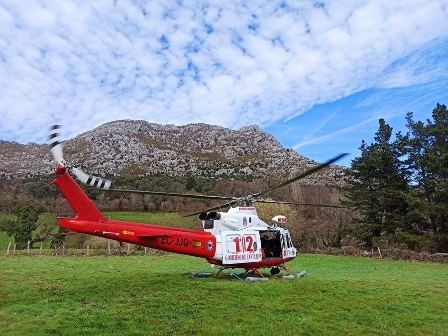 Con el equipo de rescate en zona, se ha procedido al traslado del afectado a la aeronave para su evacuación, bajo supervisión médica, hasta el aeropuerto 'Seve Ballesteros', desde donde 061 le ha llevado en ambulancia al Hospital Valdecilla, ha informado el Gobierno de Cantabria.