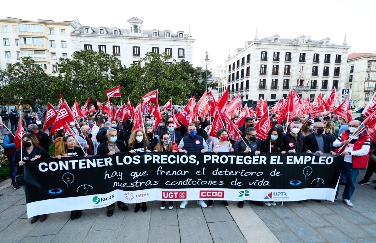 Cientos de personas se han concentrado ese miércoles en Santander para reclamar "medidas contundentes" e "inmediatas" para bajar los precios, exigir al Gobierno de España que así lo demande en Europa y pedirle un paquete de ayudas en cuantías "suficientes" para paliar la situación de los sectores económicos y productivos más afectados y de los colectivos más vulnerables.