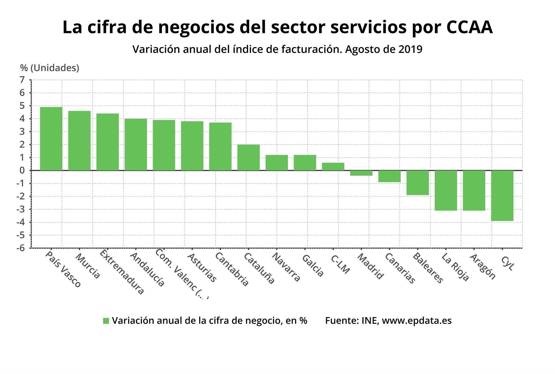 De este modo, Cantabria sigue liderando la cifra de negocios del sector servicios en el acumulado del año con un 6,5 por ciento, 2,3 puntos por encima del crecimiento del conjunto del país, que fue del 4,2%.