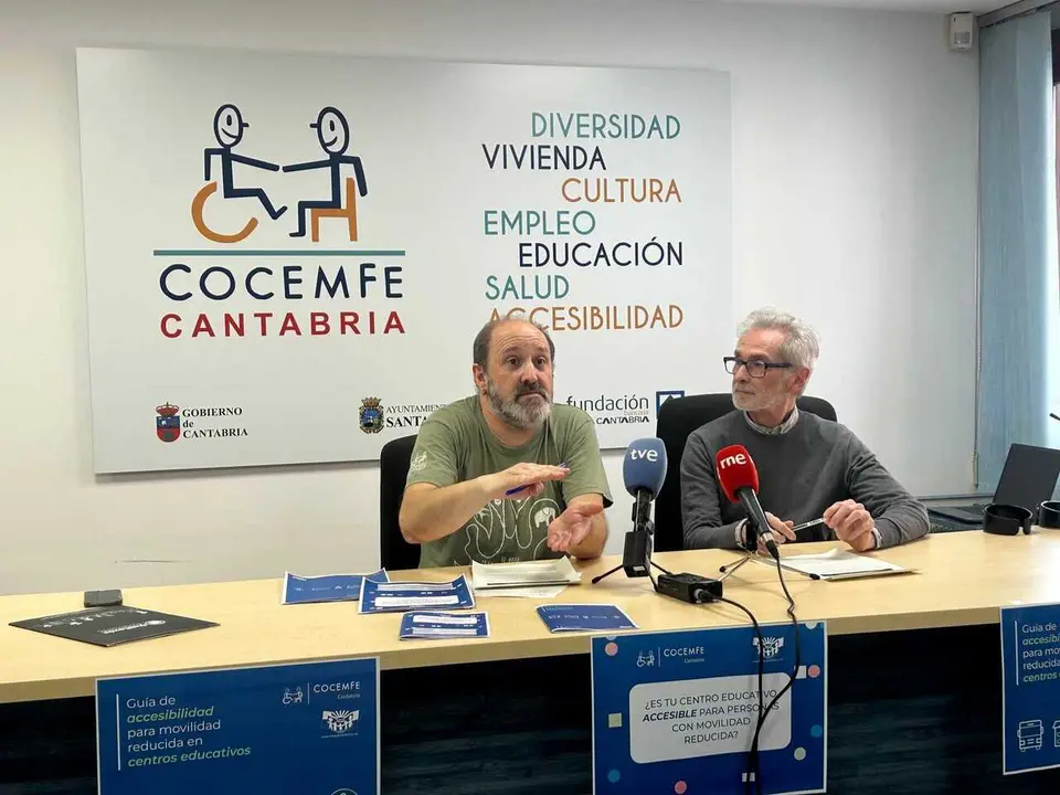 El presidente de FAMPA Cantabria, José Manuel Torre, y el consejero de COCEMFE Cantabria, Juan Manuel Moyano, han presentado este viernes en rueda de prensa la campaña '¿Es tu centro educativo accesible para personas con movilidad reducida?', en la que han señalado que "prácticamente todos" los centros de la región, salvo los de reciente construcción, tienen algún punto inaccesible.