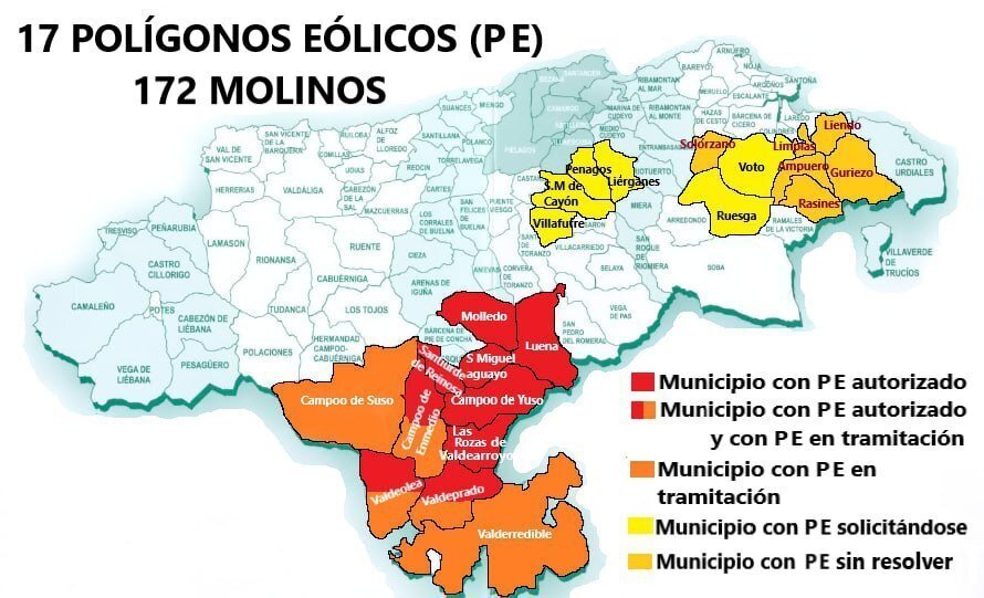 Además, han advertido que las empresas siguen buscando montes que explotar y "la amenaza se agrava en el centro y sur de Cantabria y vuelve a los Valles Pasiegos y a Trasmiera". Concretamente, se trataría de los proyectos Astillero I y II, en los municipios de Villafufre y Santa María de Cayón, y de los polígonos Fuente Pico y Sierra del Sel, en Ruesga y Junta de Voto. Además, han preguntado también en Penagos y Liérganes.