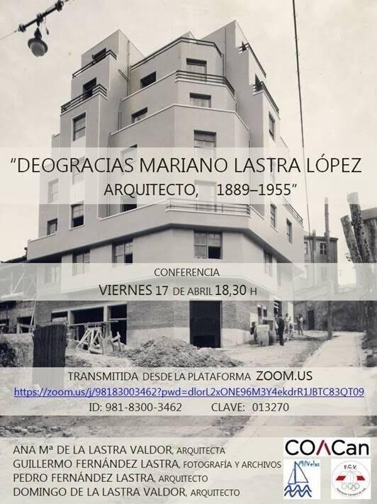 El Colegio Oficial de Arquitectos de Cantabria, con la colaboración de la Federación Cántabra de Vela y la Asociación Mil Velas, ofrecerá este viernes la conferencia online 'Deogracias Mariano Lastra López. Arquitecto, 1889-1955'.