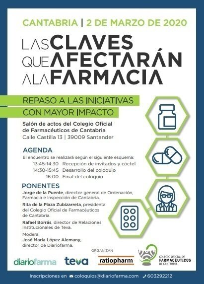 También tomará parte en el coloquio que será moderado por el director de Diariofarmacia, José María López Alemany, el director de Relaciones Institucionales de Teva, Rafael Borrás.